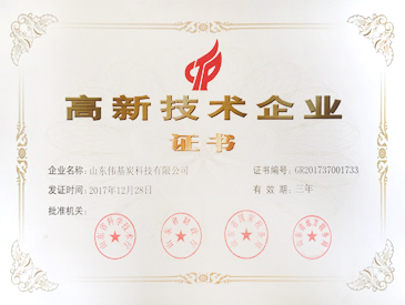 2011年7月,山東偉基炭科技有限公司被評定為“山東省節(jié)能環(huán)保產(chǎn)業(yè)示范企業(yè)”。